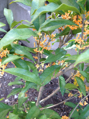 ワンコの骨をすこしだけ庭にうめたので、そこに金木犀を植えました。