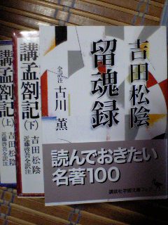 でも今日は松陰が門下生に遺した遺書・『留魂録』と松陰の『講孟さつ(答にりっとう)記』を訳してある本を買った。
